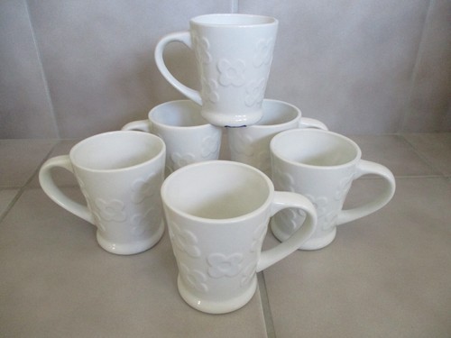 6 Crate Barrel Flower Power White Embossed Coffee Mugs Cups Set Of 6 Ebay