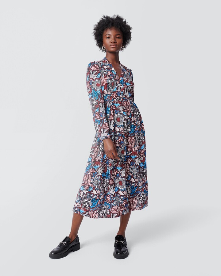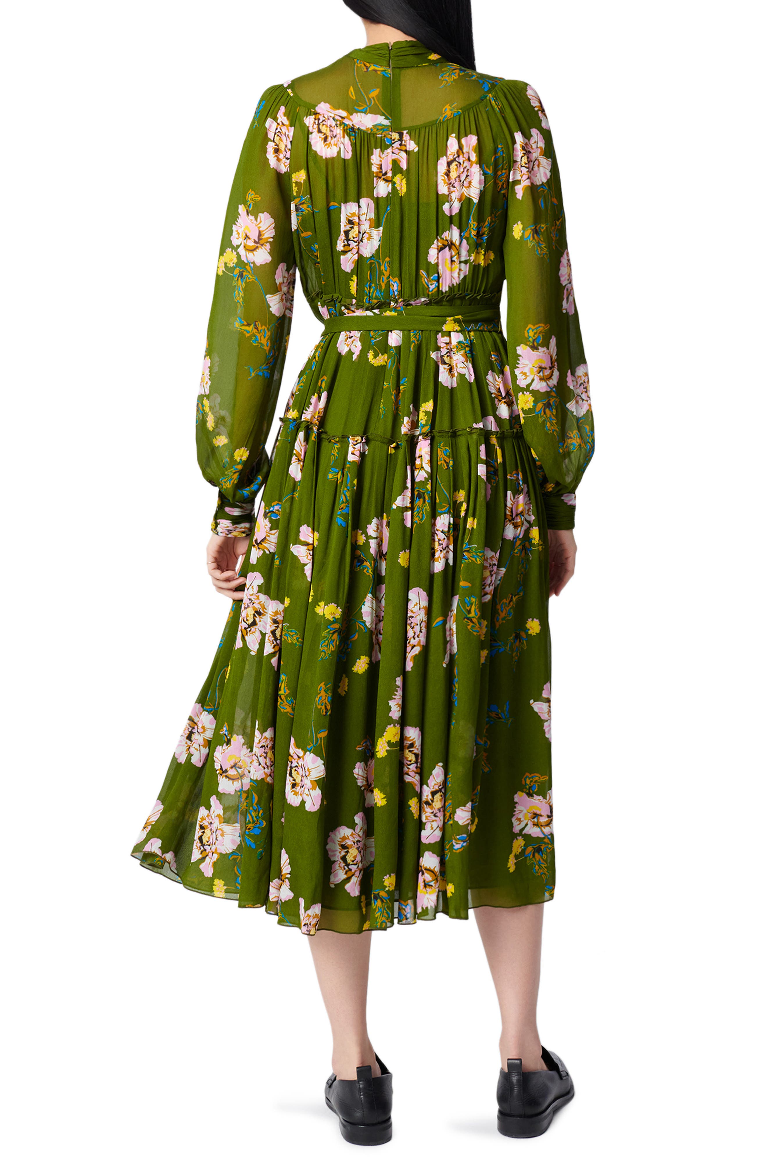 Dvf Kent Floral Long Sleeve Chiffon Midi Dress Nordstrom